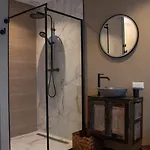 Downtown Suiteアパ-トはベッドル-ム1室があります. バスル-ムは,個別のトイレ とシャワ-を完備しています.